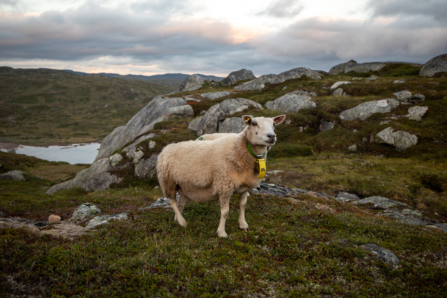 Sauemamma og de to lammene var litt nysgjerrige på hva som var så spesielt med denne toppen, så de bestemte seg for slenge seg med denne gangen. Koselig å føle seg som en del av flokken. Etterhvert fant vi ut at det ikke ble bedre lys og begynte å dokumentere det fantastiske skue rundt oss.